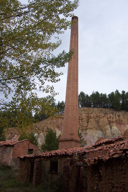 - Un edificio principal que alberga los hornos, en cuya parte posterior se encuentra todavía la chimenea de ladrillo de sección poligonal y diámetro decreciente, con una pequeña boca de arco de medio punto.