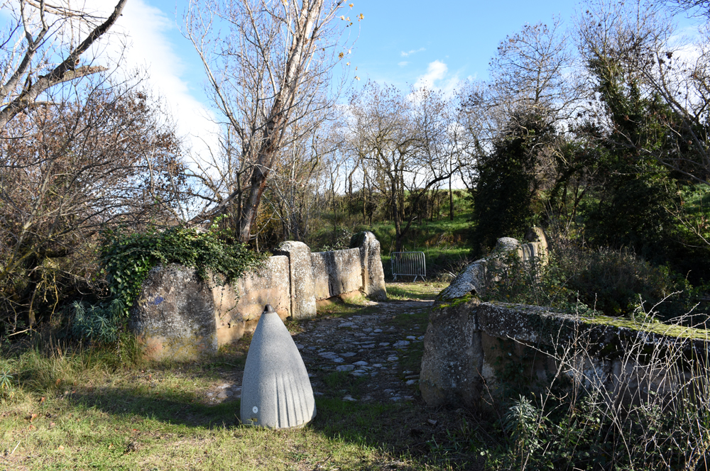 Cuando se construyó el puente también se realizaron obras de adaptación en el lecho y las márgenes del río: el lecho se cubrió con sillares en la zona situada bajo el puente, con el fin de evitar la erosión de los estribos; asimismo se construyeron muros de contención de cierta envergadura en las márgenes a ambos lados del puente, con sillares estrechos y muy alargados.