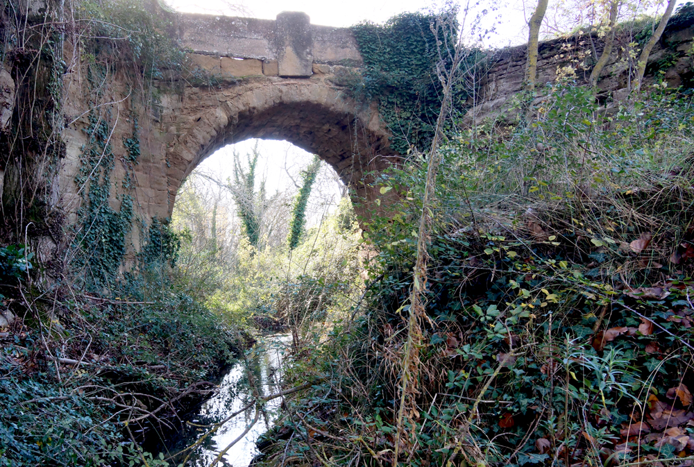 Situado sobre el río Sotón, en el camino viejo a Plasencia del Monte, es un puente de pequeño tamaño, de una longitud de 6,30 m, realizado con sillares de buena cantería. Tiene un solo ojo en arco de medio punto, que arranca de estribos ligeramente escalonados. Su tablero es plano y conserva un pavimento de cantos; debió estar delimitado por un pretil de sillares, cuya primera hilada se conserva, pero fue sustituido por grandes placas de arenisca separadas por piezas más o menos prismáticas; el tablero conserva un pavimento de cantos.